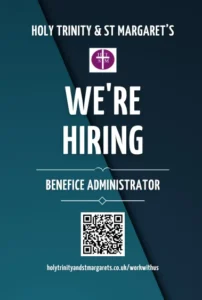 The United Benefice of Holy Trinity and St Margaret’s is looking for a part time Administrator. The key responsibilities include: running the office and supporting the Ministry Team with their administrative tasks; acting as an initial point of contact; coordinating and administering events and Church/Hall bookings.